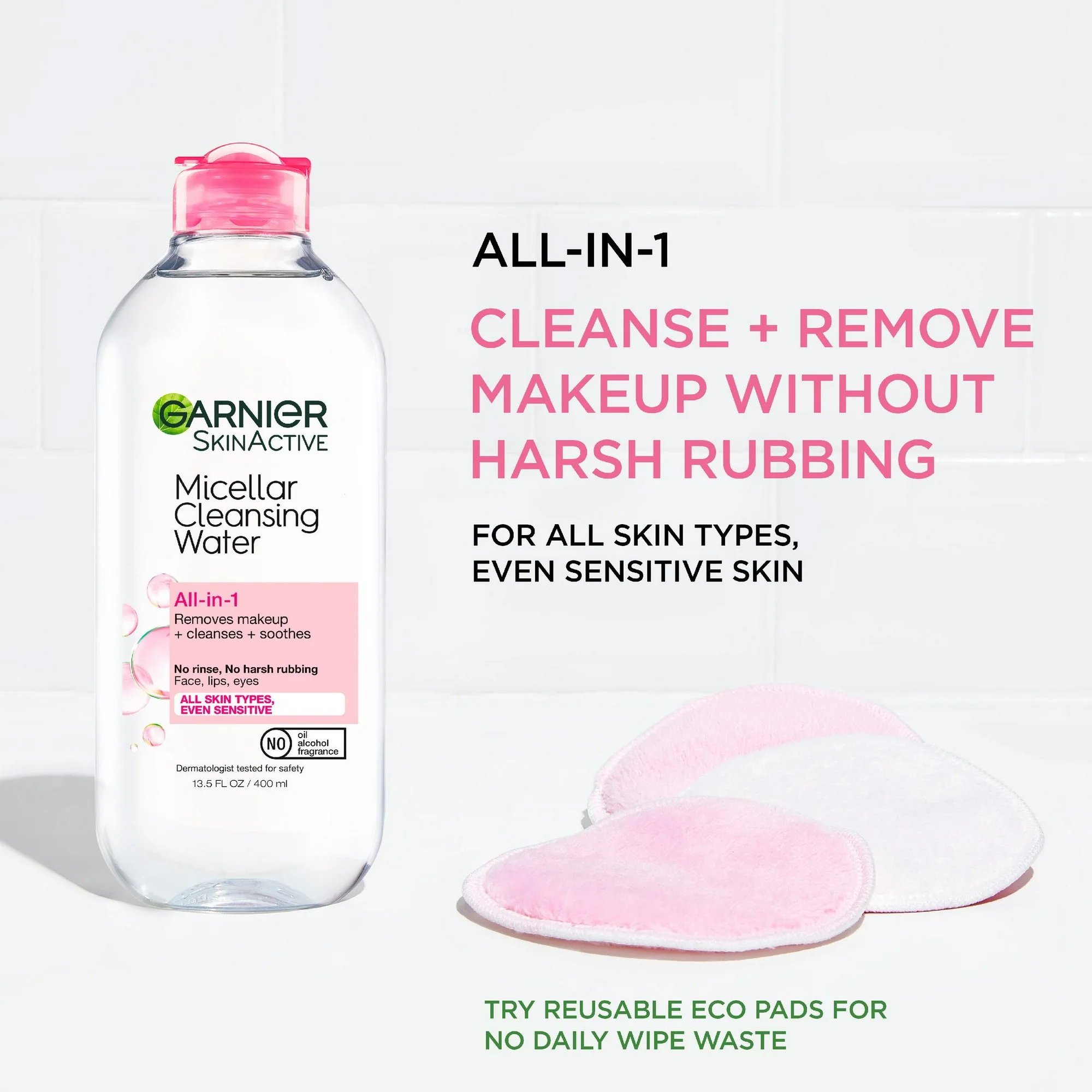 Garnier Micellar Cleansing Water (Pink) is a gentle yet powerful cleanser that removes makeup, dirt, and impurities while leaving skin refreshed and hydrated. Suitable for all skin types, even sensitive.