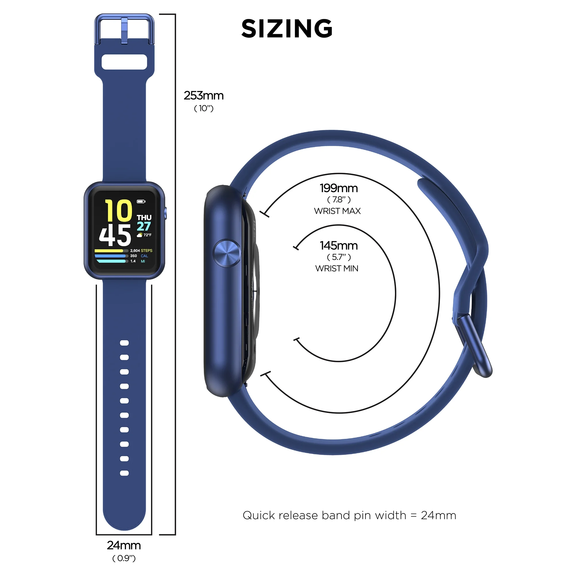 iTech Fusion 3 Rectangular Smart Watch, Blue, Silicone Strap