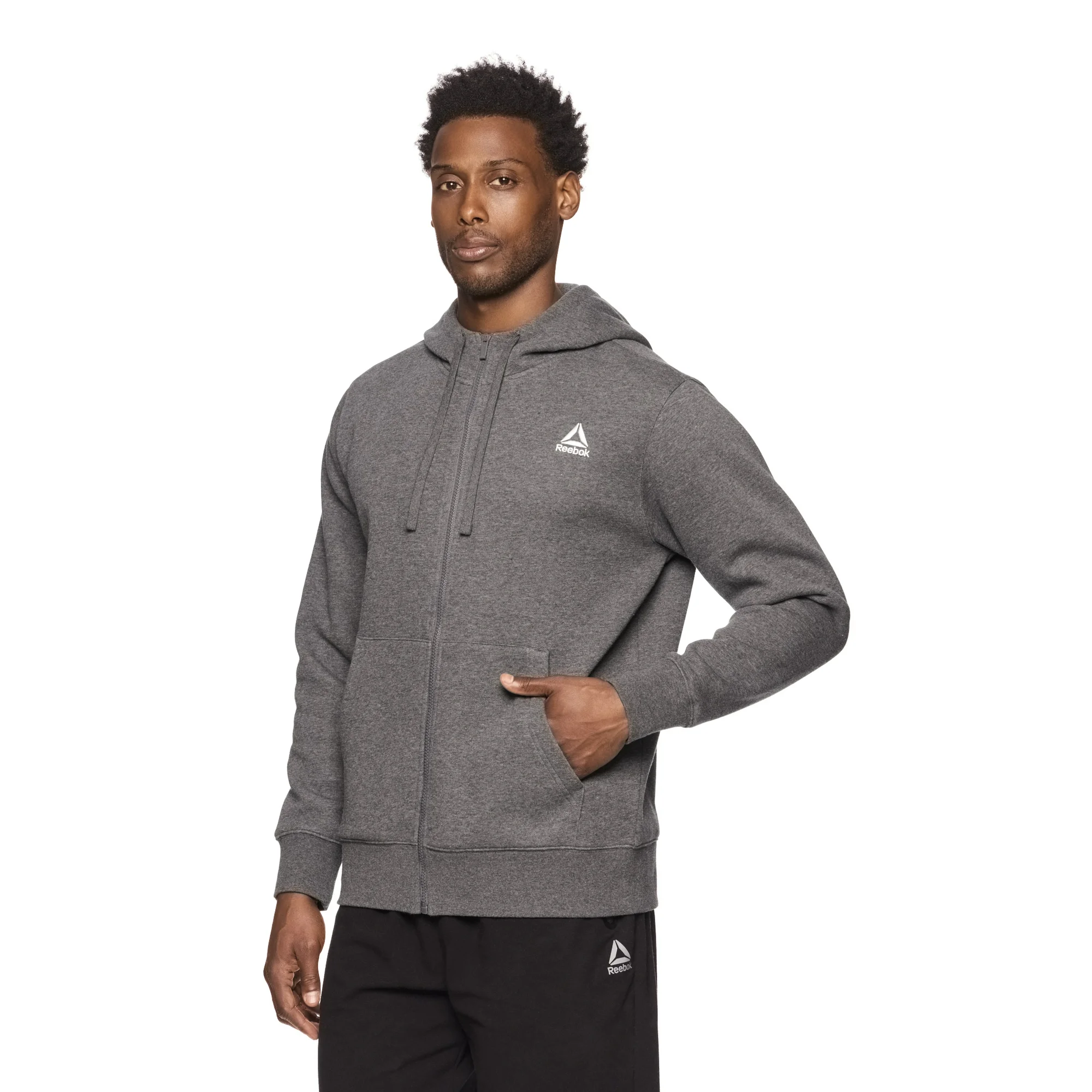 The Reebok Men’s Game Day Full Zip Hoodie combines warmth, style, and comfort. With its full zip closure and adjustable drawstring hood, it’s the perfect go-to hoodie for chilly days or casual outings.